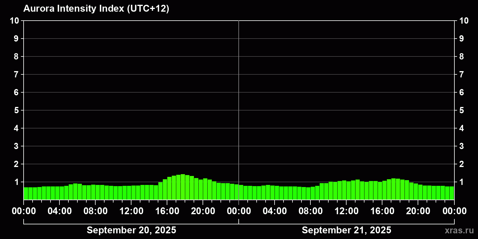 Changes in the auroral intensity index from 2025-09-20 to 2025-09-21 local time