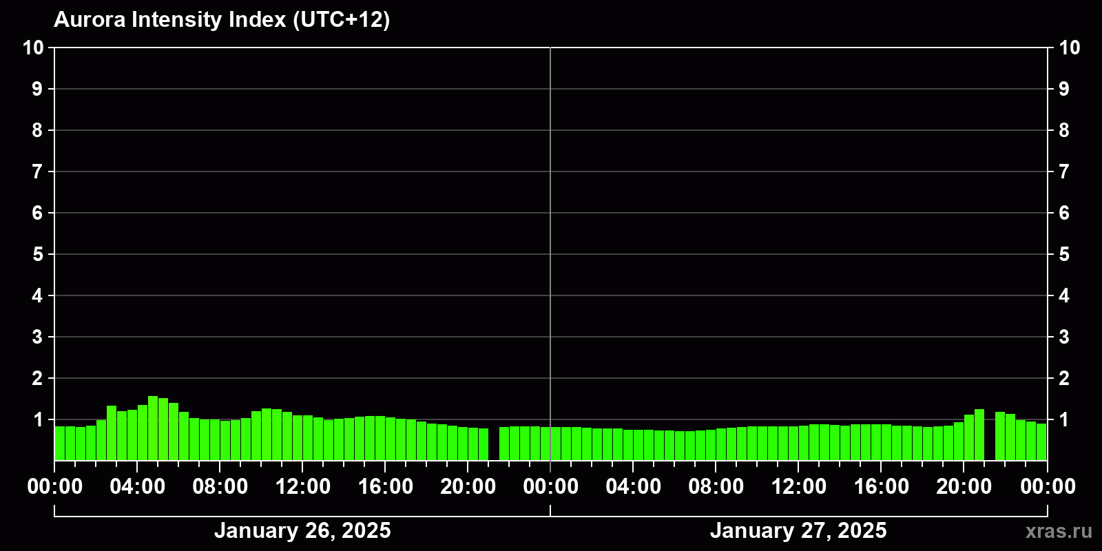 Changes in the auroral intensity index from 2025-01-26 to 2025-01-27 local time