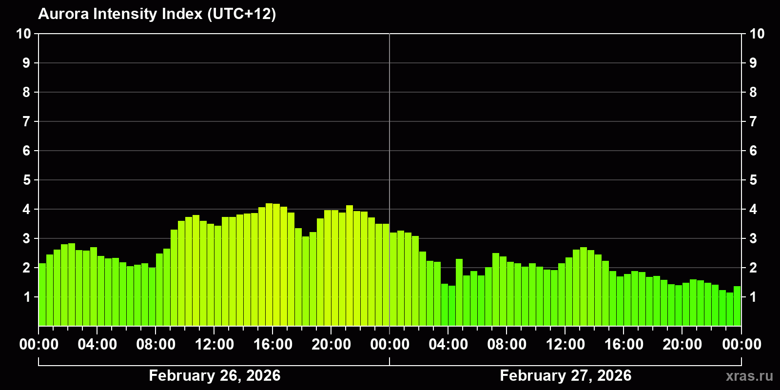 Changes in the auroral intensity index from 2026-02-26 to 2026-02-27 local time