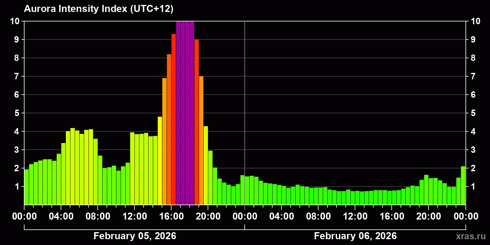 Changes in the auroral intensity index from 2026-02-05 to 2026-02-06 local time