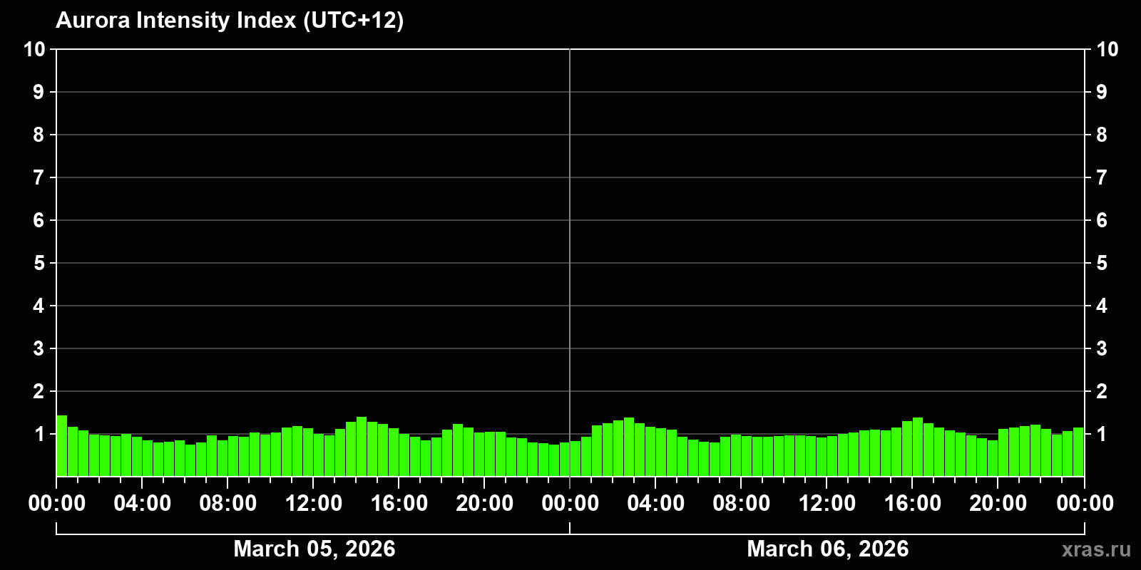 Changes in the auroral intensity index from 2026-03-05 to 2026-03-06 local time