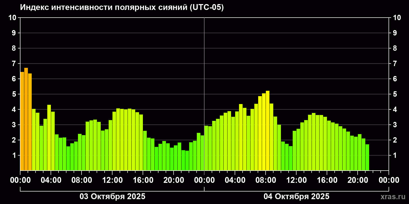 Вероятность полярных сияний в городах Канады