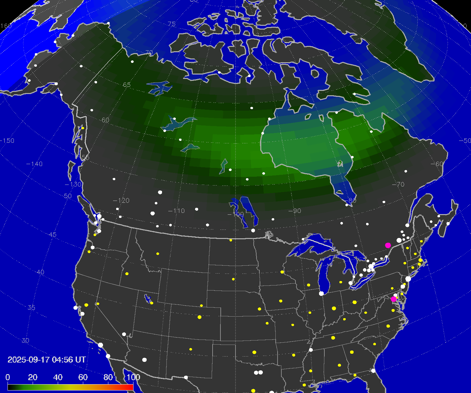 Northern lights (auroras) over North America