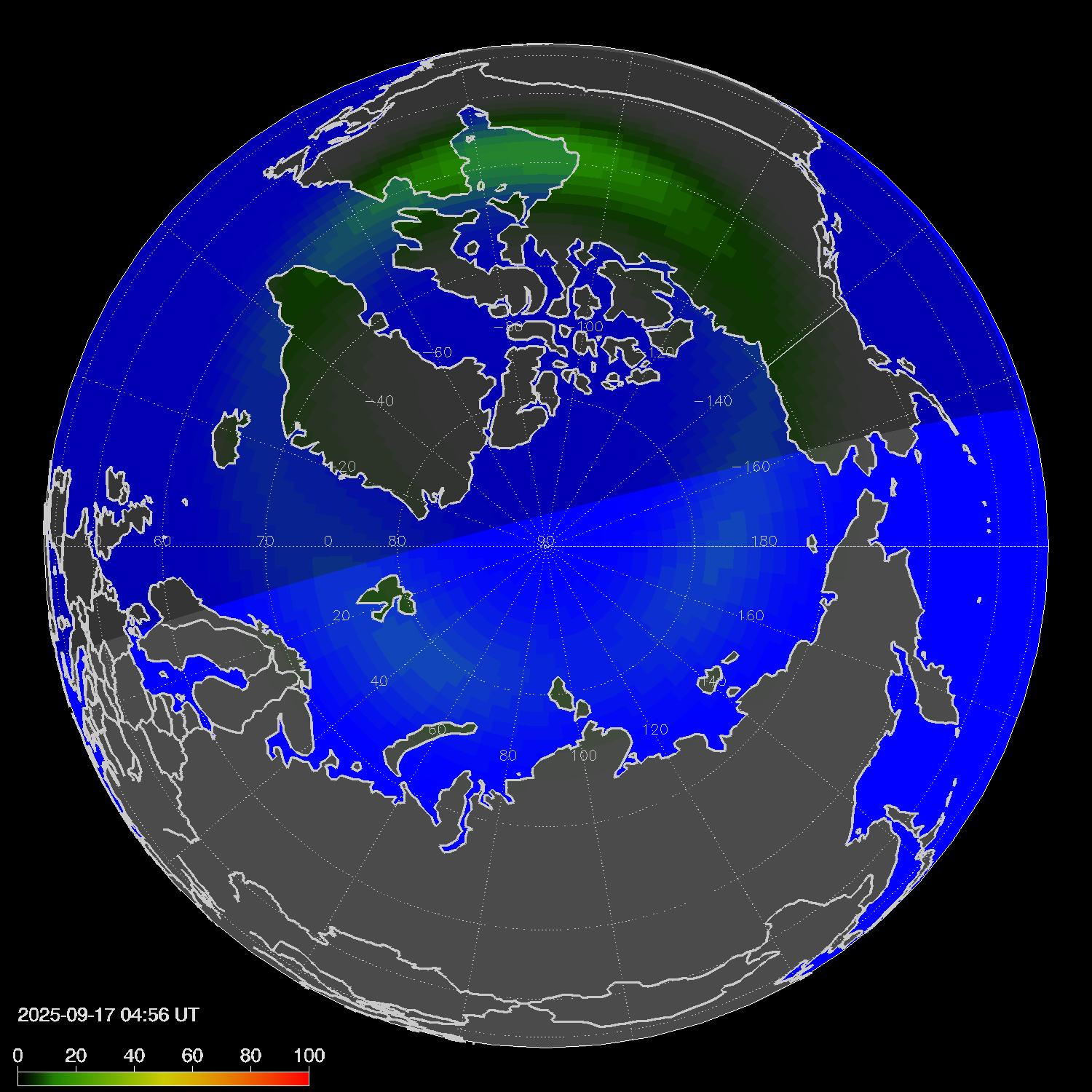 Probability of northern lights in Winnipeg