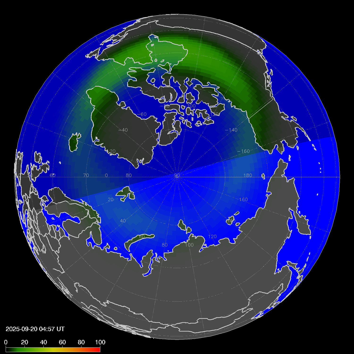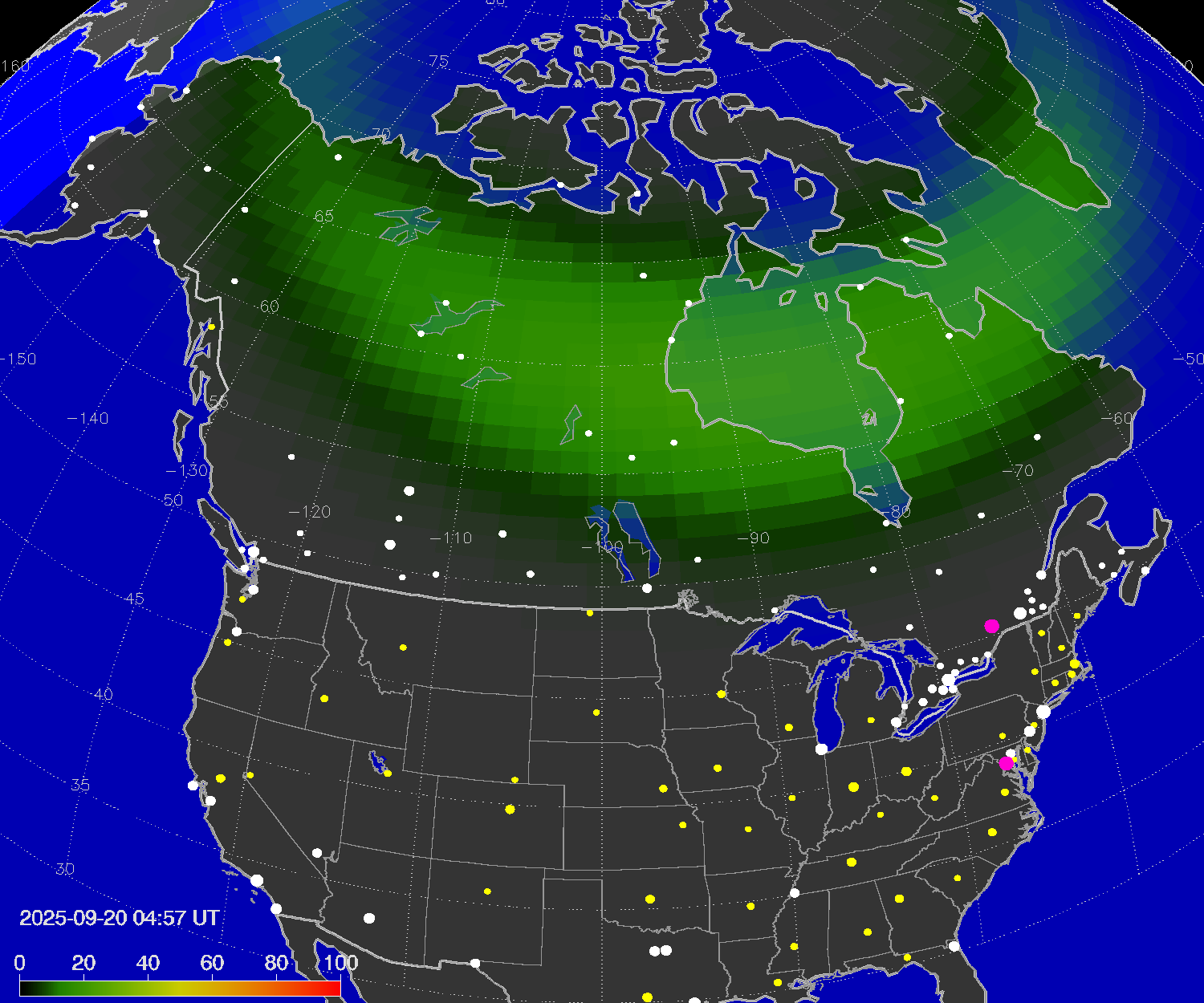 Probability of northern lights in Winnipeg