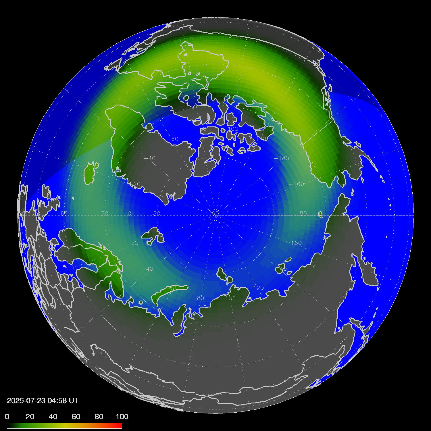 Probability of northern lights in Winnipeg