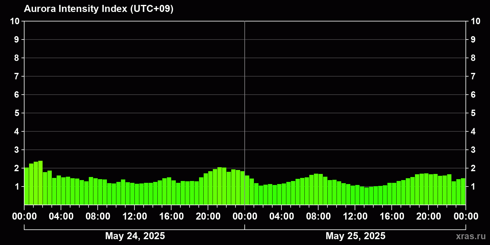 Changes in the auroral intensity index from 2025-05-24 to 2025-05-25 local time