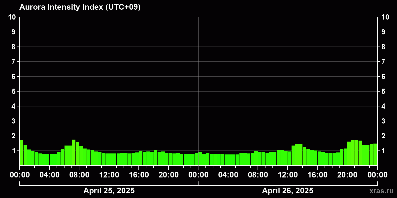 Changes in the auroral intensity index from 2025-04-25 to 2025-04-26 local time