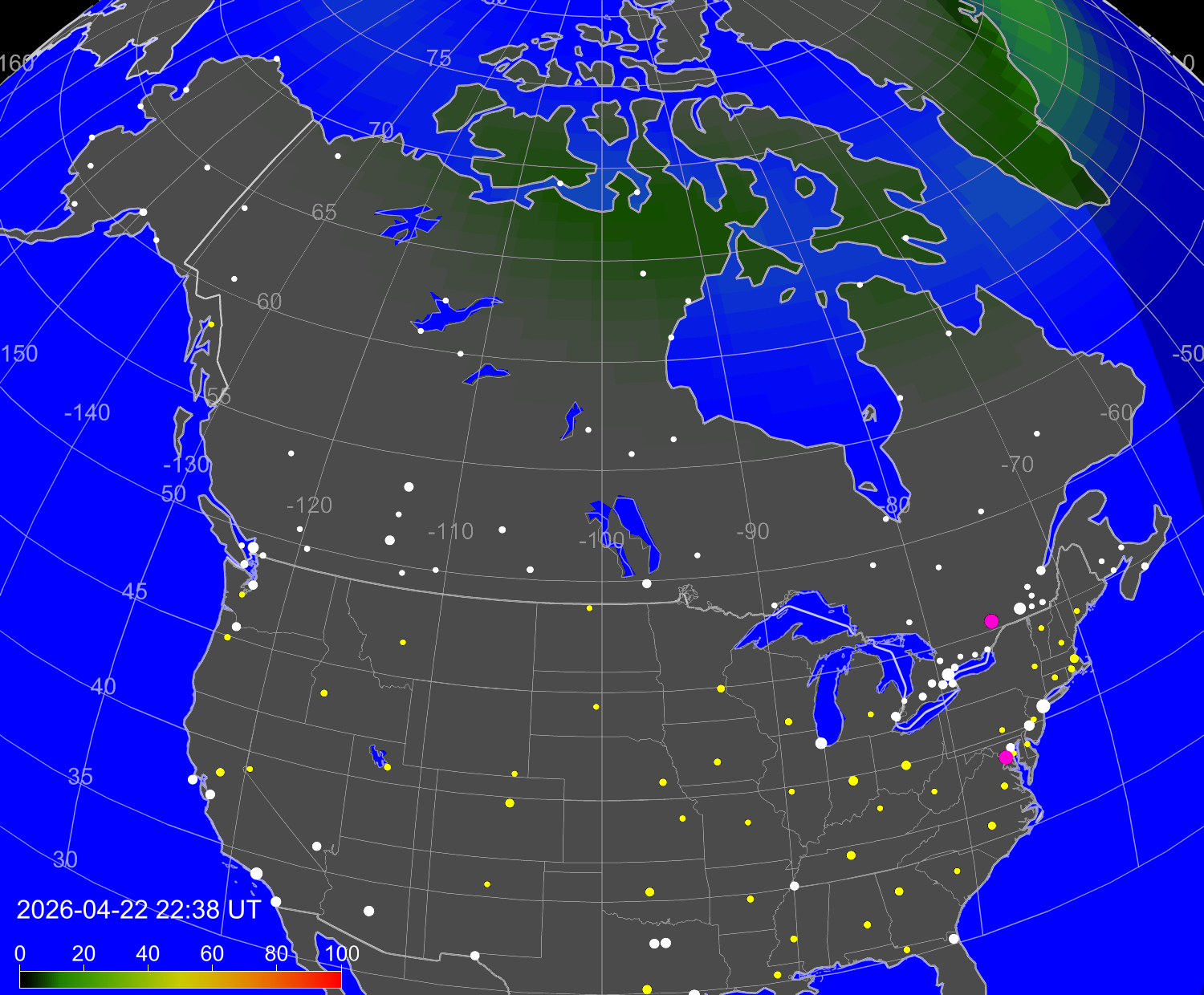Northern lights (auroras) over North America
