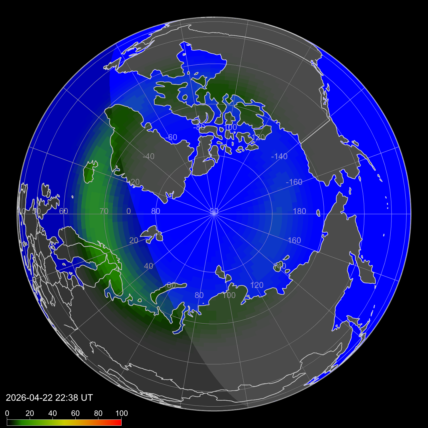 Probability of northern lights in Yellowknife