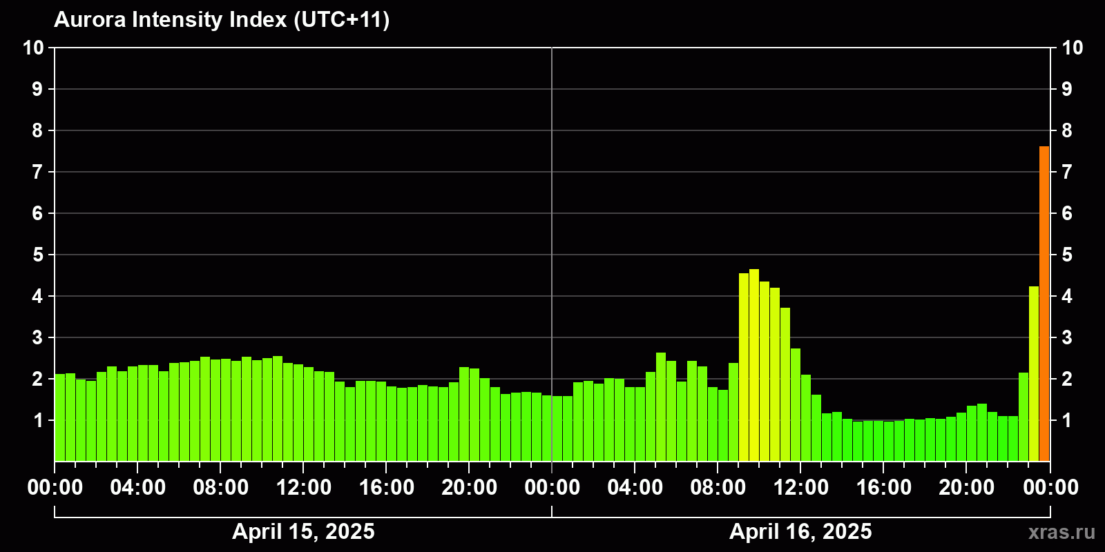 Auroras (northern lights) in Yuzhno-Sakhalinsk — Apr 16, 2025