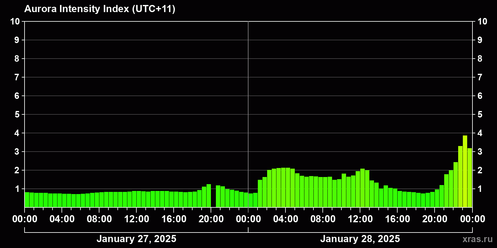 Auroras (northern lights) in Yuzhno-Sakhalinsk — Jan 28, 2025