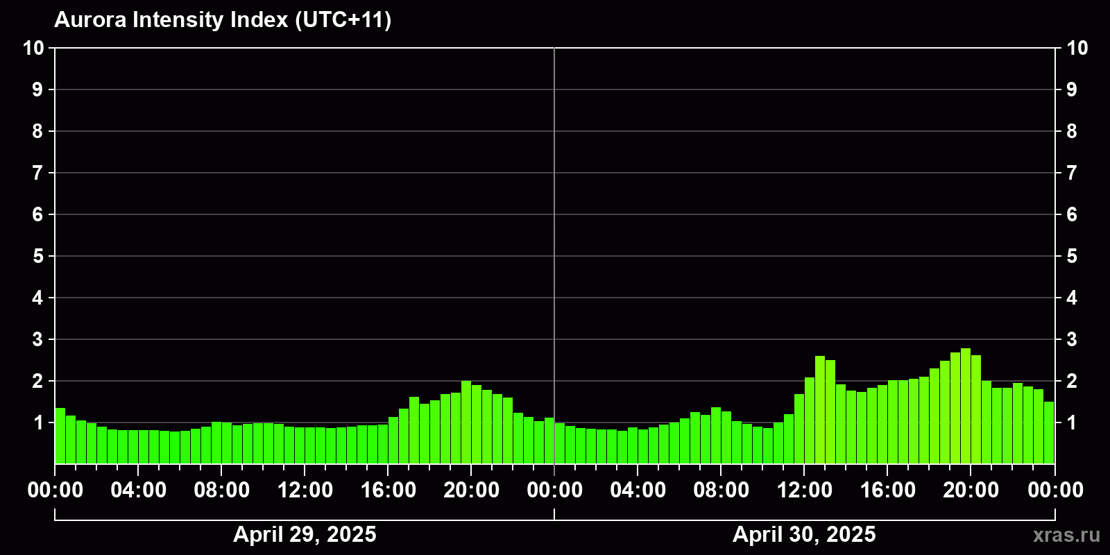 Auroras (northern lights) in Yuzhno-Sakhalinsk — Apr 30, 2025