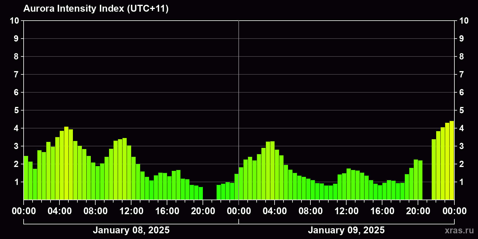 Auroras (northern lights) in Yuzhno-Sakhalinsk — Jan 09, 2025