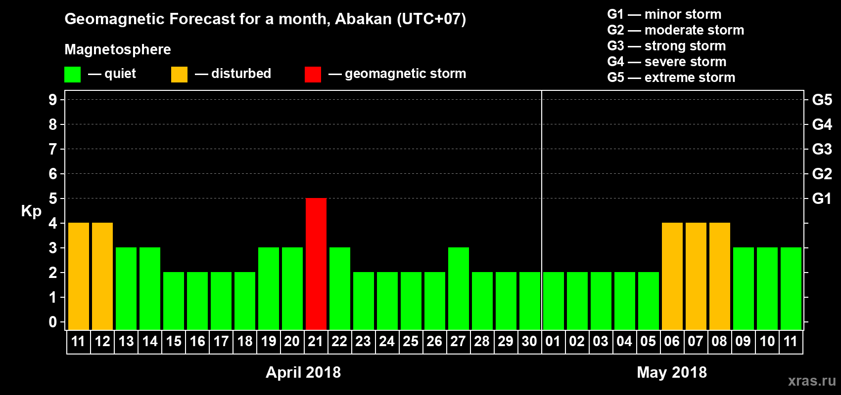 Geomagnetic activity forecast in Abakan — Apr 11, 2018