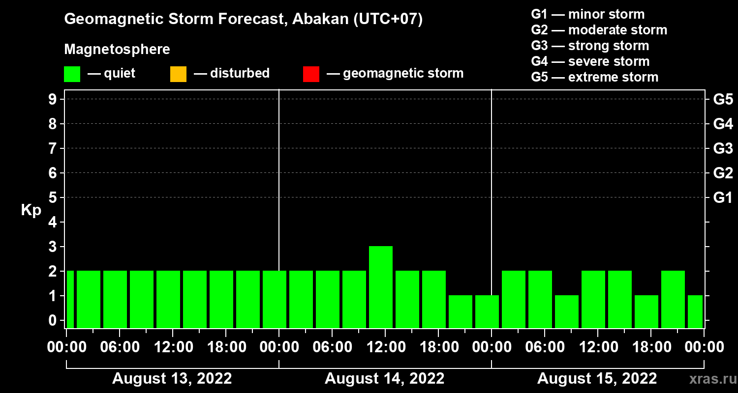 Geomagnetic storm forecast in Abakan for Aug 13, 2022