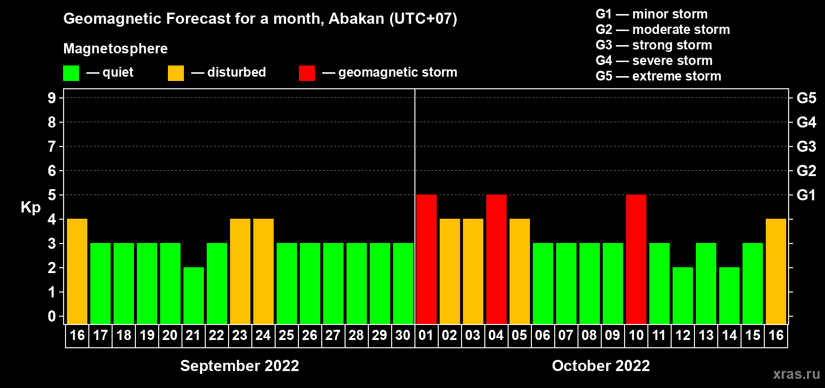 Geomagnetic storm forecast in Abakan for Sep 16, 2022