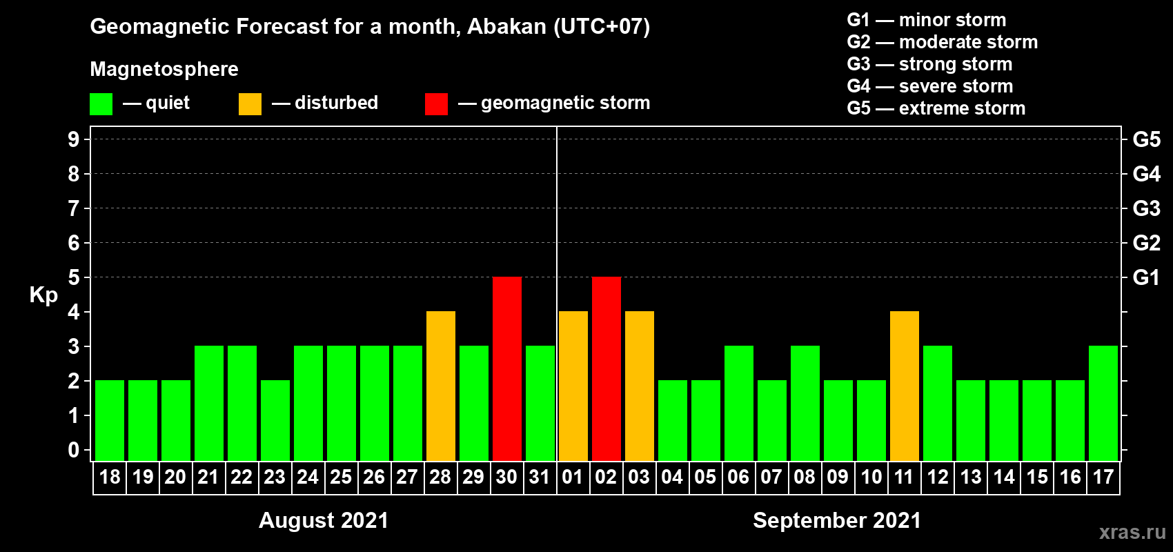 Geomagnetic storm forecast in Abakan for Aug 18, 2021