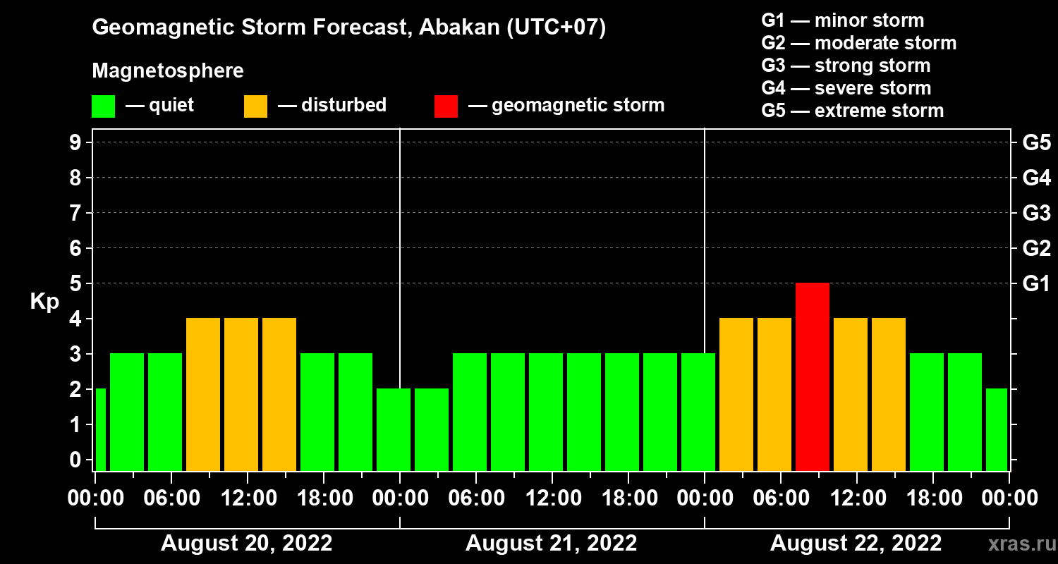 Geomagnetic storm forecast in Abakan for Aug 20, 2022