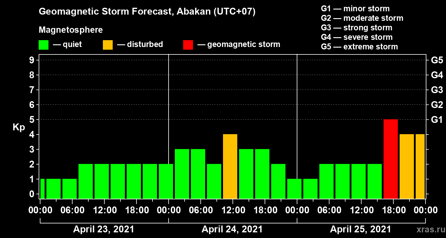 Geomagnetic storm forecast in Abakan for Apr 23, 2021