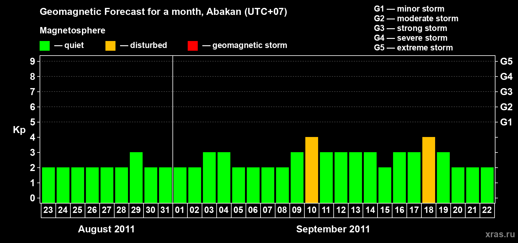 Geomagnetic storm forecast in Abakan for Aug 23, 2011