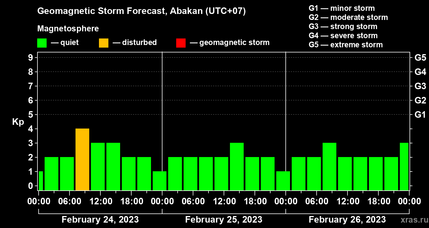 Geomagnetic storm forecast in Abakan for Feb 24, 2023