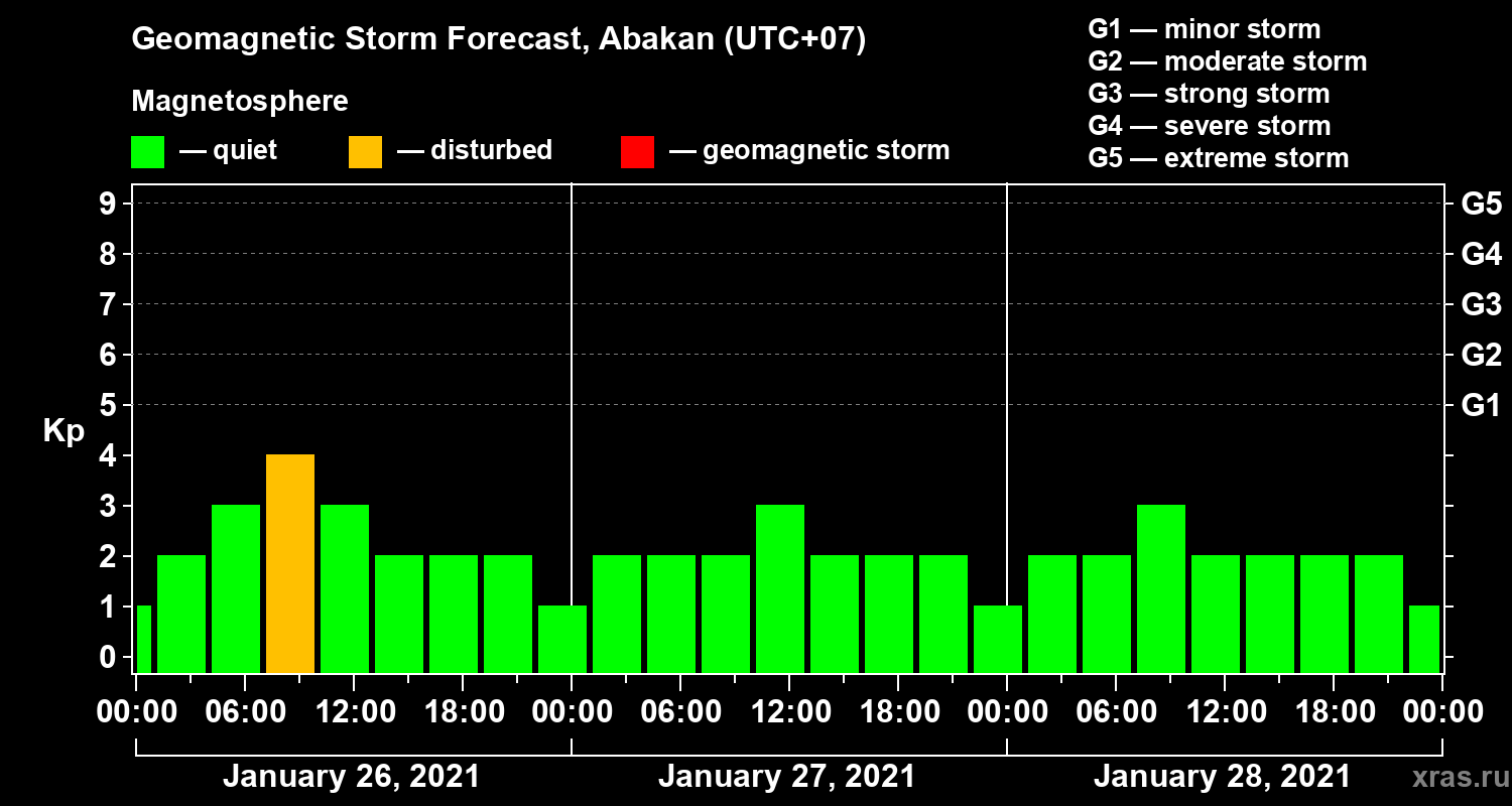 Geomagnetic activity forecast in Abakan — Jan 26, 2021