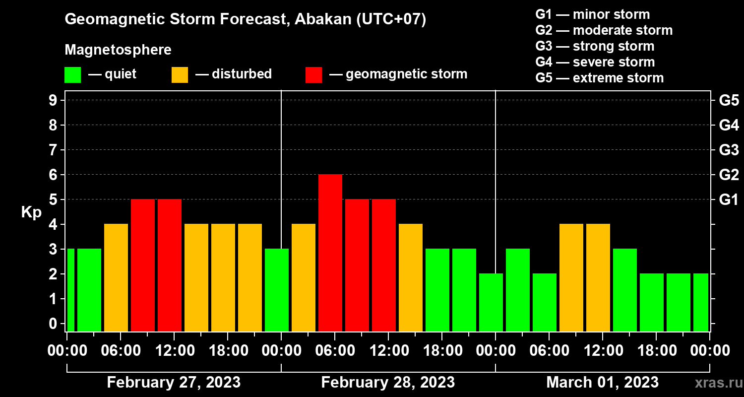 Geomagnetic storm forecast in Abakan for Feb 27, 2023