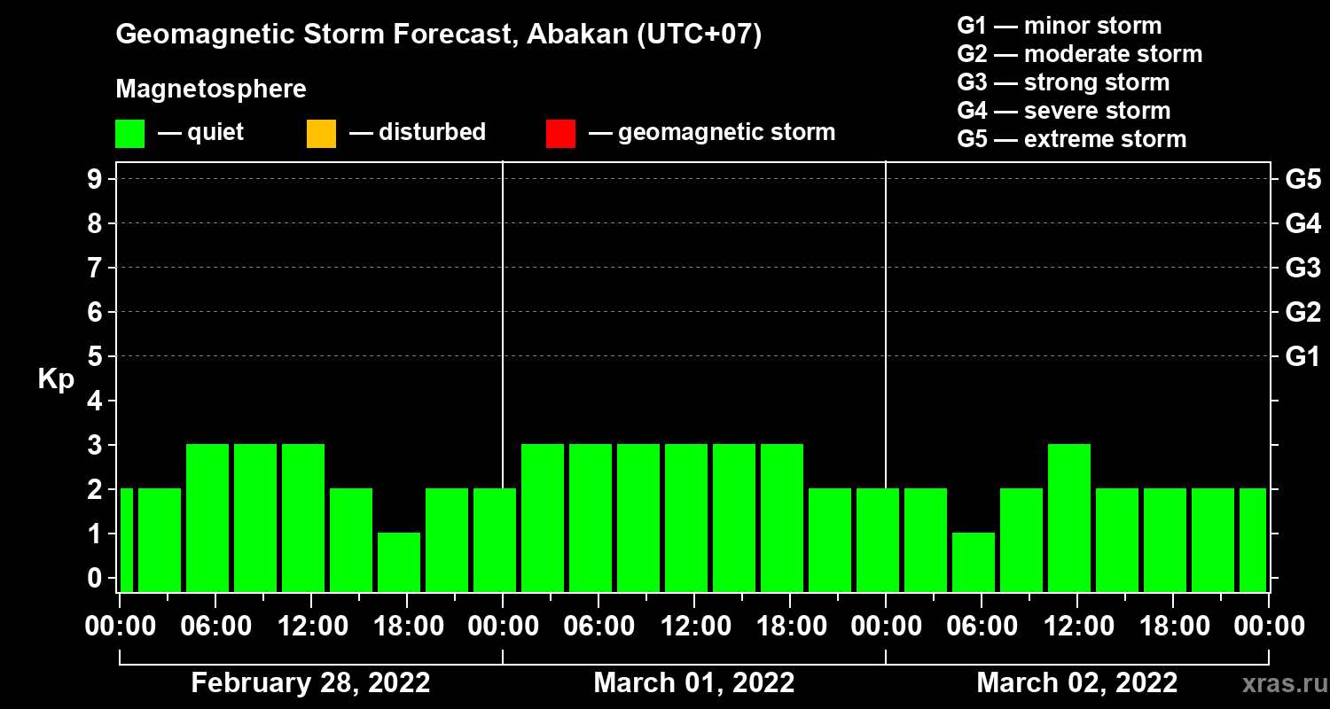 Geomagnetic storm forecast in Abakan for Feb 28, 2022