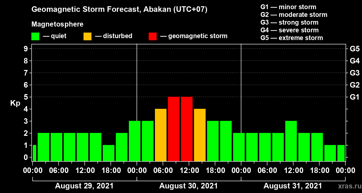 Geomagnetic storm forecast in Abakan for Aug 29, 2021