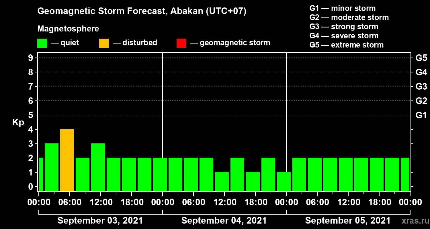 Geomagnetic storm forecast in Abakan for Sep 03, 2021