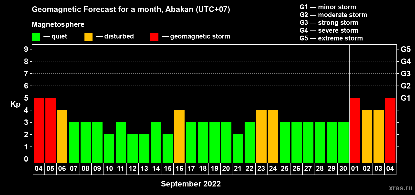 Geomagnetic storm forecast in Abakan for Sep 04, 2022