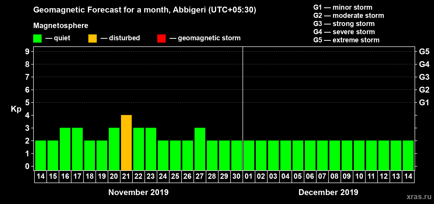 Geomagnetic storm forecast in Abbigeri for Nov 14, 2019
