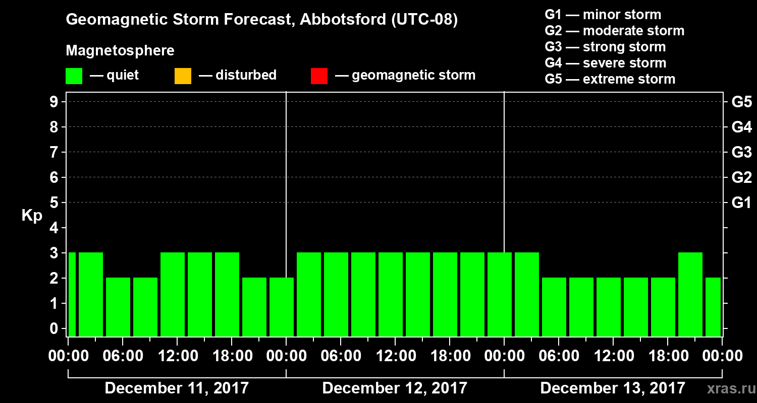 Geomagnetic storm forecast in Abbotsford for Dec 11, 2017