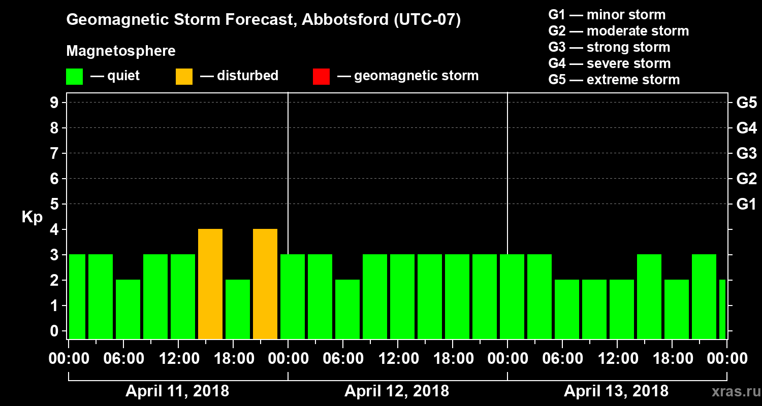 Geomagnetic storm forecast in Abbotsford for Apr 11, 2018