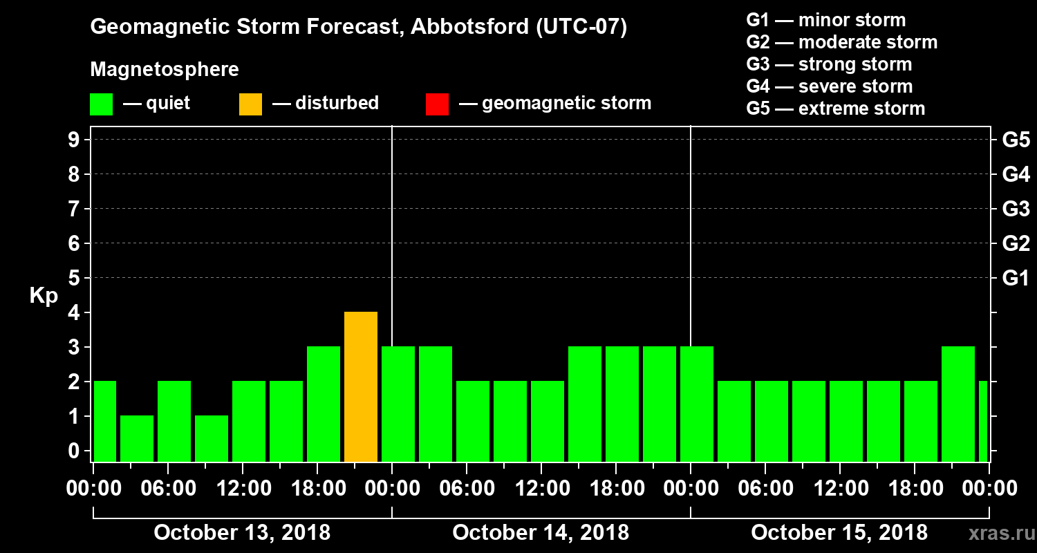 Geomagnetic storm forecast in Abbotsford for Oct 13, 2018