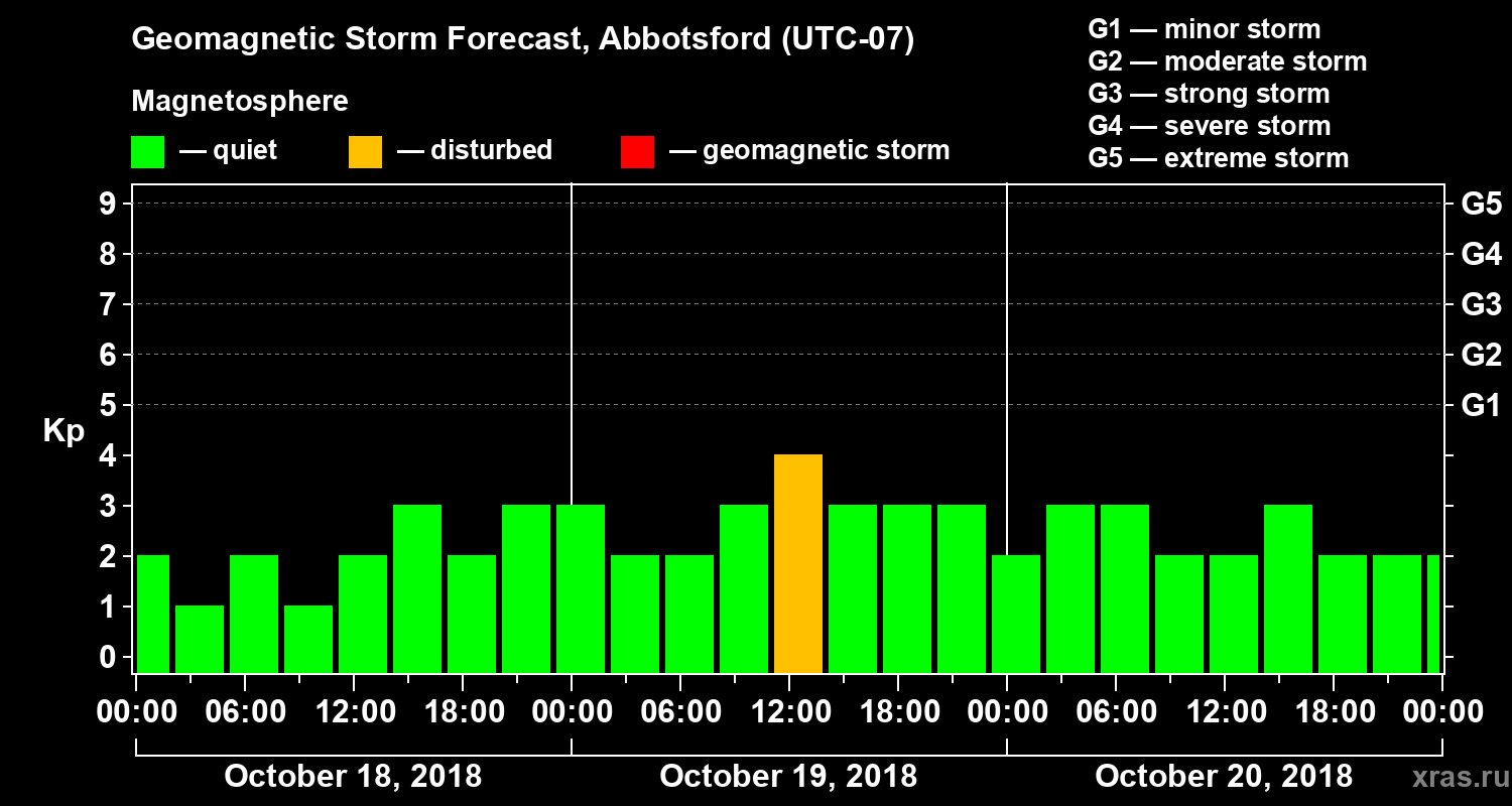 Geomagnetic storm forecast in Abbotsford for Oct 18, 2018