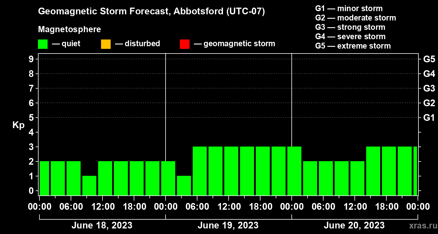 Geomagnetic storm forecast in Abbotsford for Jun 18, 2023