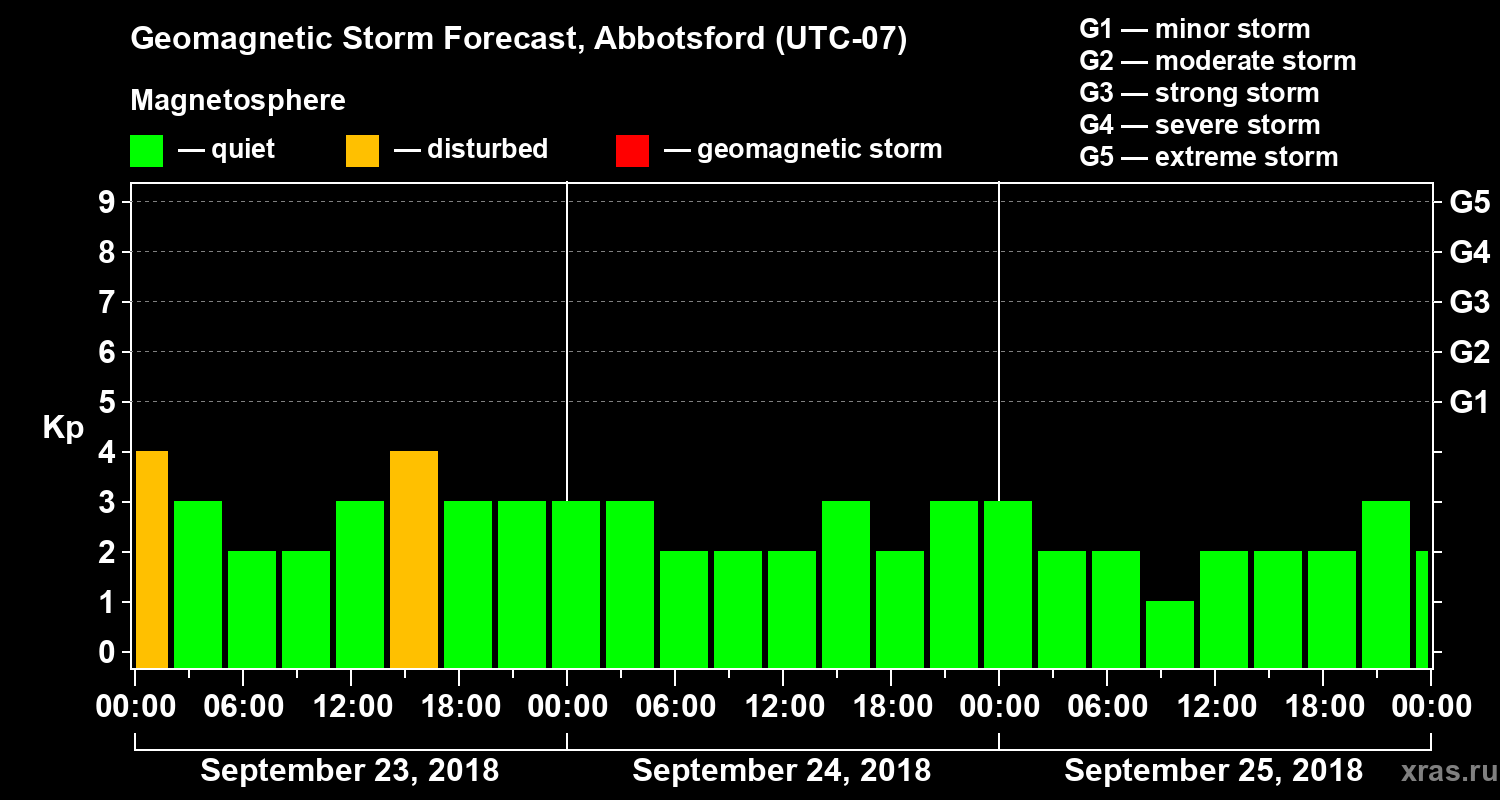 Geomagnetic storm forecast in Abbotsford for Sep 23, 2018