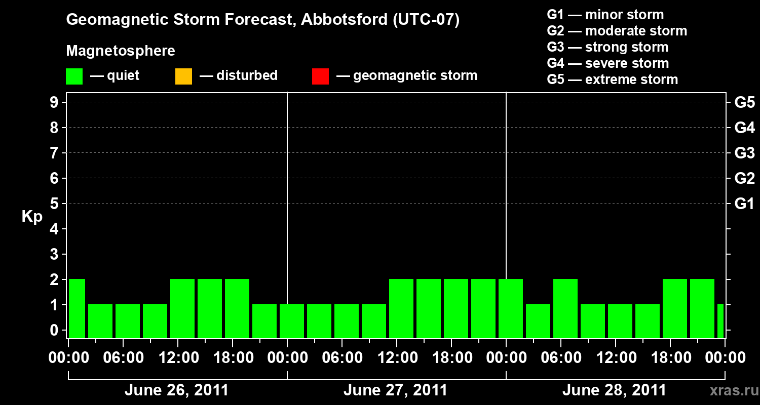 Geomagnetic storm forecast in Abbotsford for Jun 26, 2011