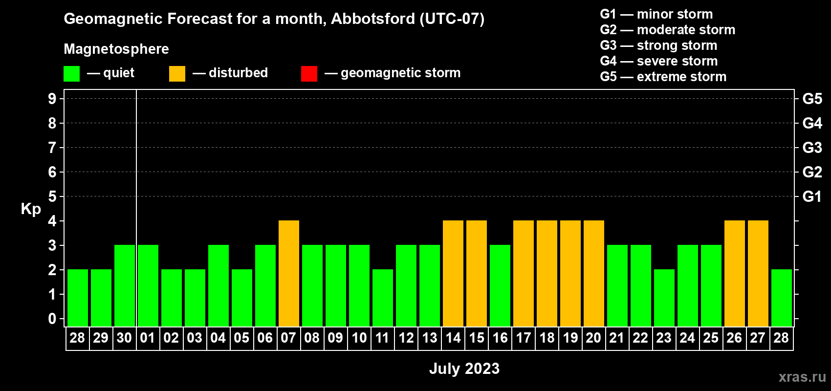 Geomagnetic storm forecast in Abbotsford for Jun 28, 2023