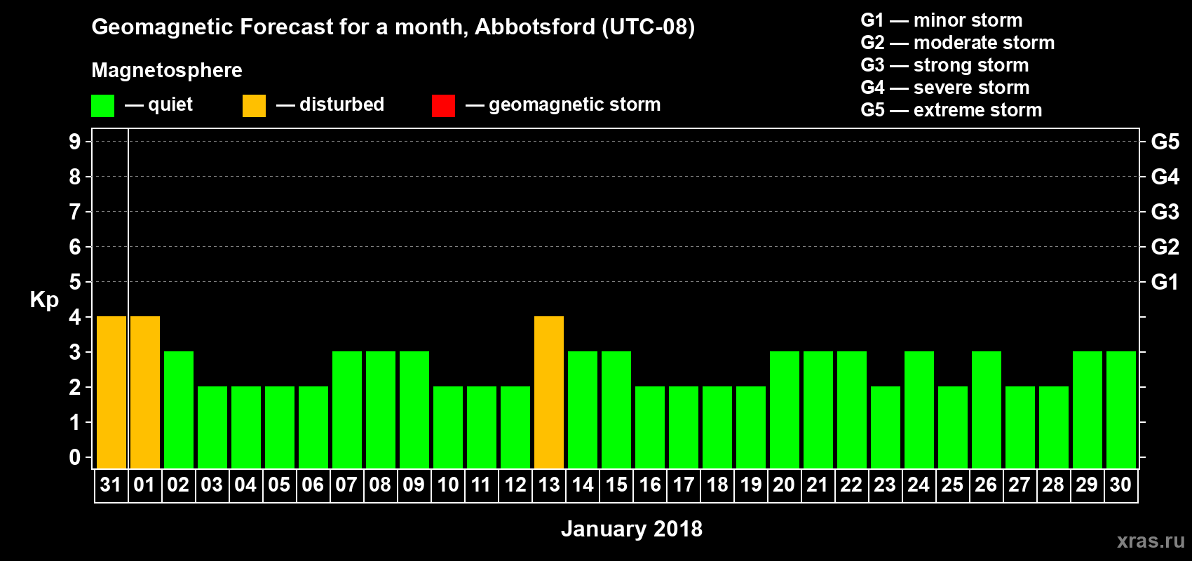Geomagnetic storm forecast in Abbotsford for Dec 31, 2017