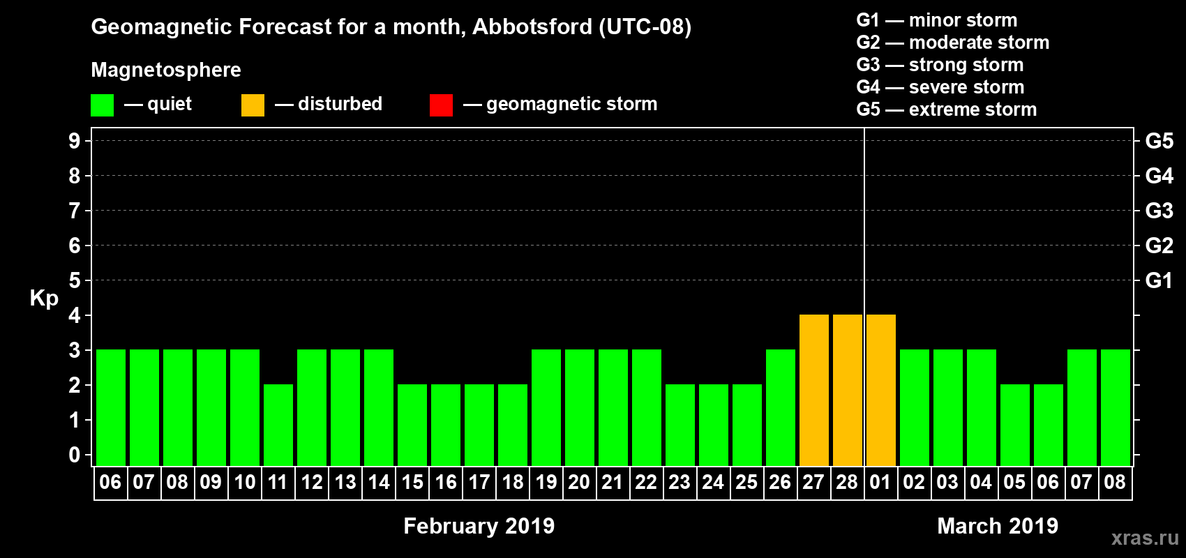 Geomagnetic storm forecast in Abbotsford for Feb 06, 2019