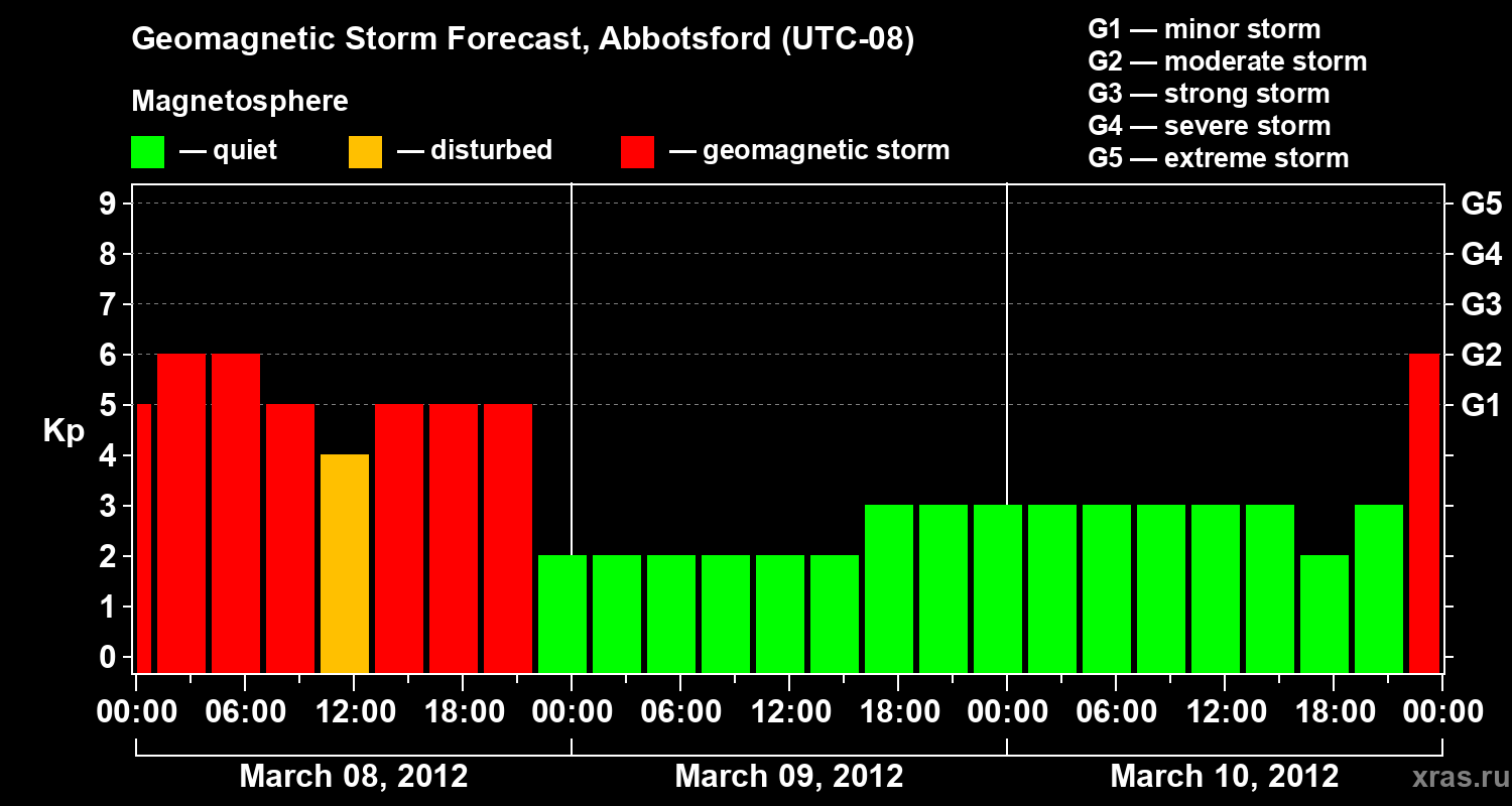 Geomagnetic storm forecast in Abbotsford for Mar 08, 2012