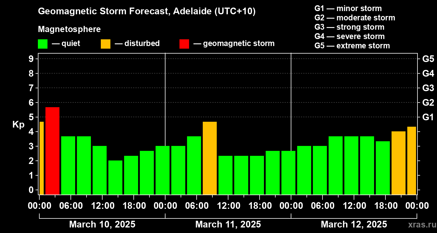 Geomagnetic storm forecast in Adelaide for Mar 10, 2025