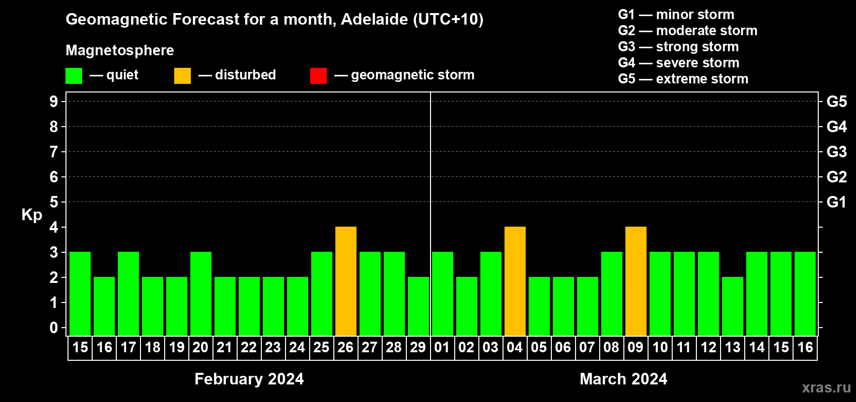 Geomagnetic storm forecast in Adelaide for Feb 15, 2024