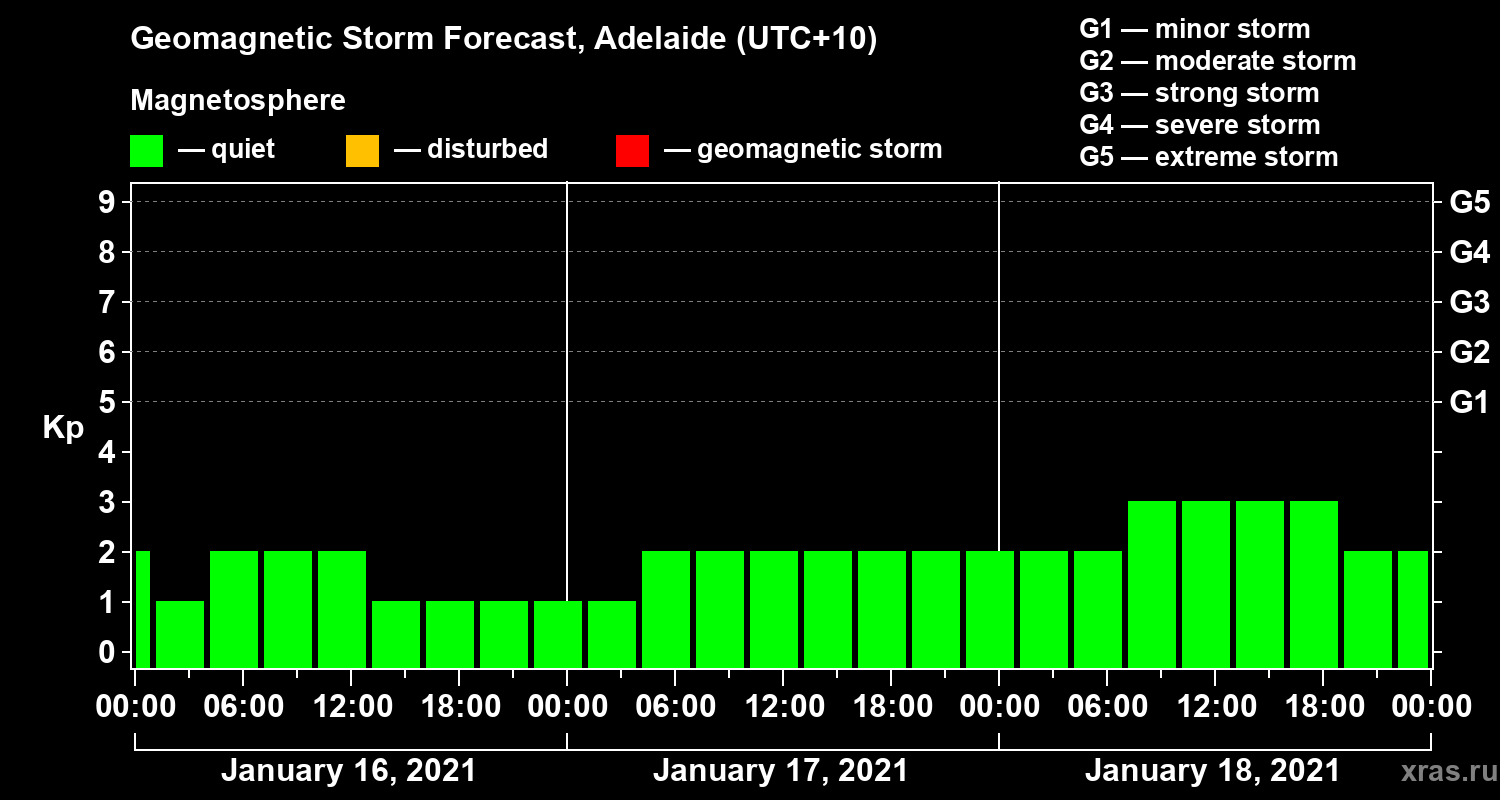 Geomagnetic storm forecast in Adelaide for Jan 16, 2021
