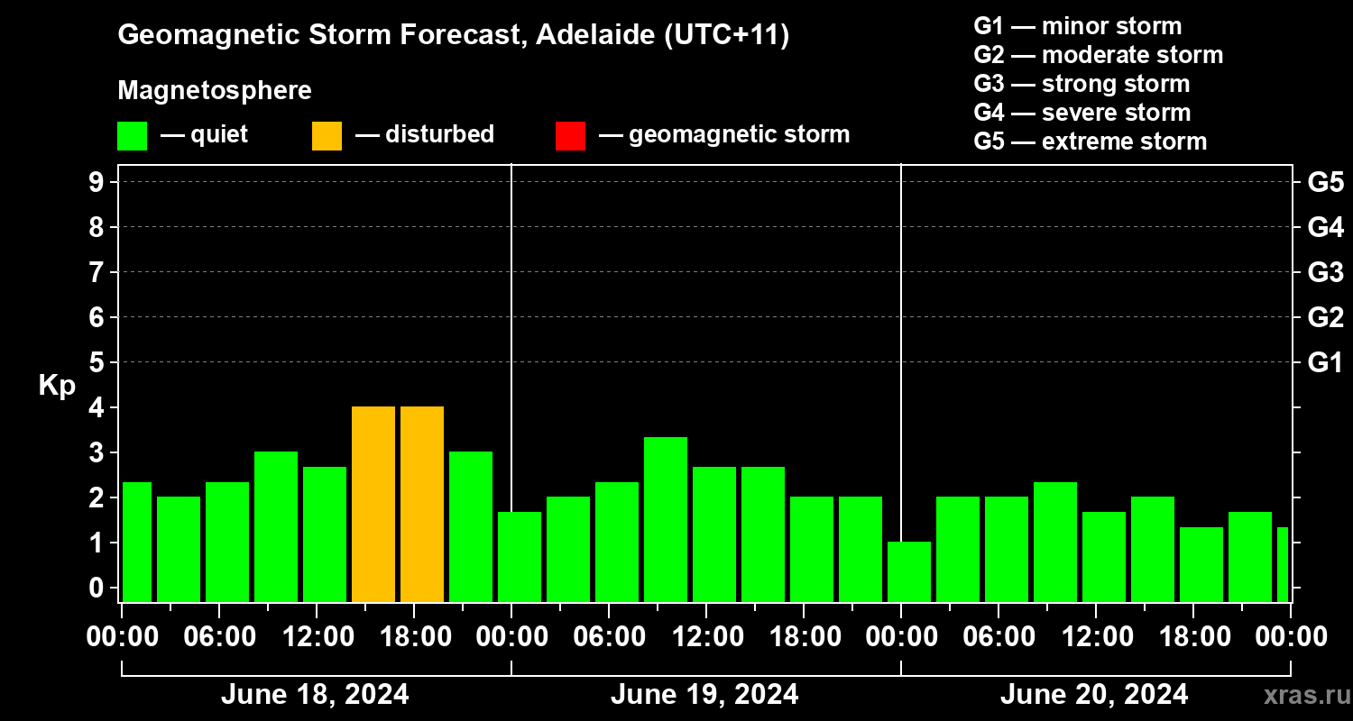 Geomagnetic storm forecast in Adelaide for Jun 18, 2024