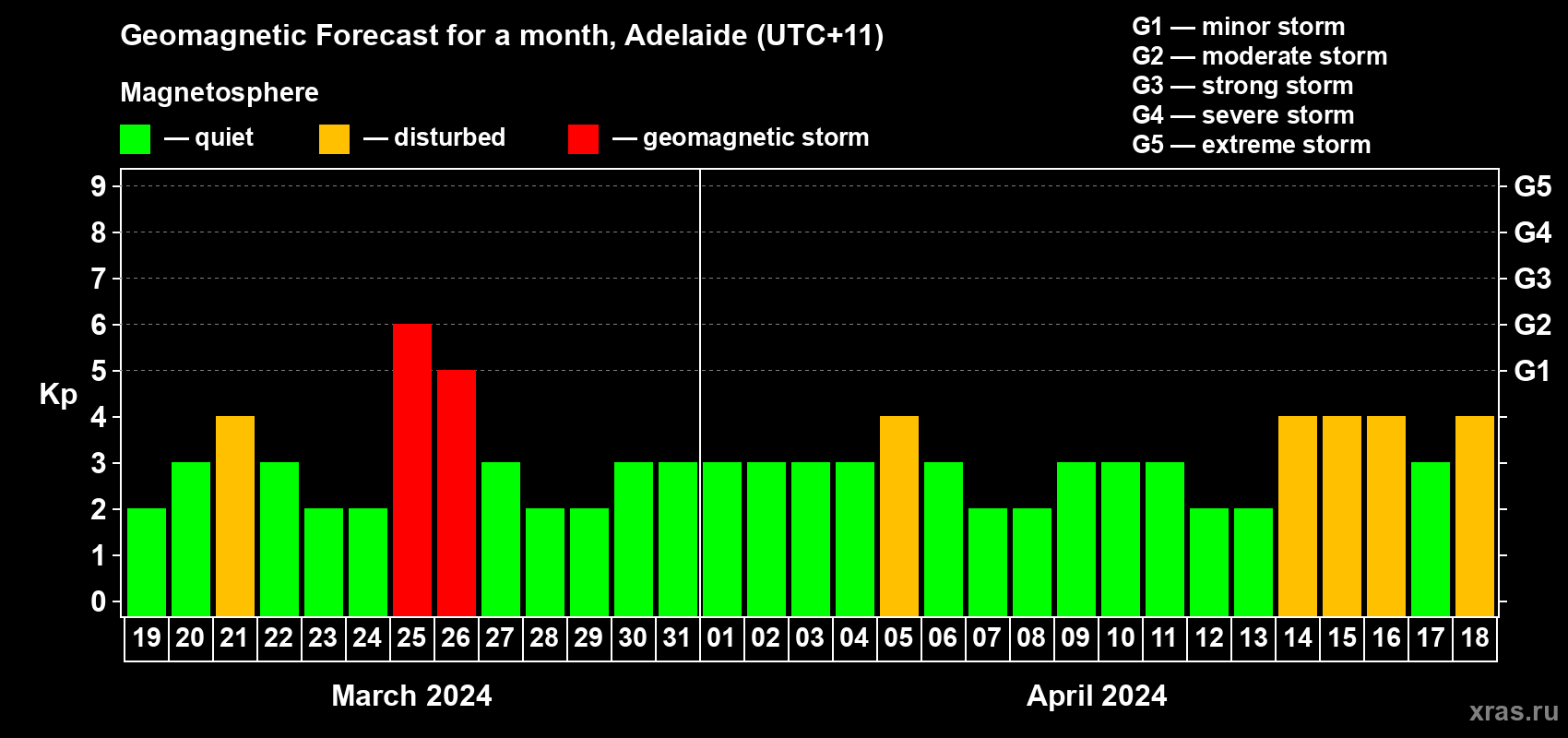 Geomagnetic storm forecast in Adelaide for Mar 19, 2024