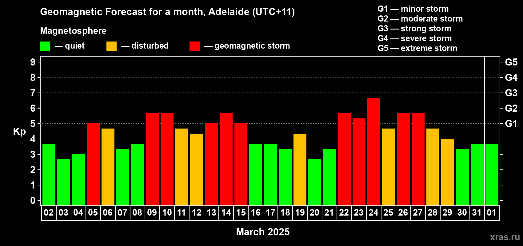 Geomagnetic storm forecast in Adelaide for Mar 02, 2025